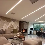 Der Innenraum ist mit einem Steinkamin ausgestattet und bietet einen Hosenbügel und eine Klimaanlage sowie einen Flachbildfernseher mit Satellitenkanälen. Gästen stehen Betten mit Daunenkissen zur Verfügung. Freuen Sie sich auf 2 Badezimmer mit einem Bidet, einer getrennten Toilette und einer Dusche. Darüber hinaus gibt es im Badezimmer einen Haartrockner, Toilettenartikel und eine Duschhaube.